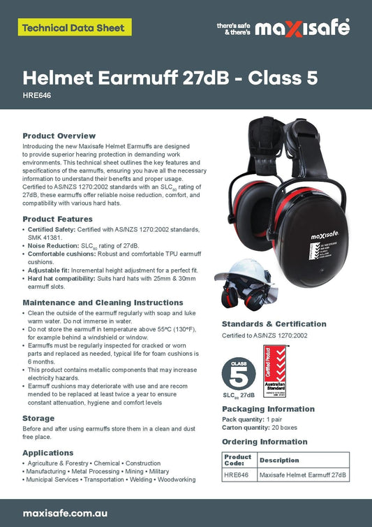 Maxisafe HRE646 Helmet Earmuff 27dB Class 5