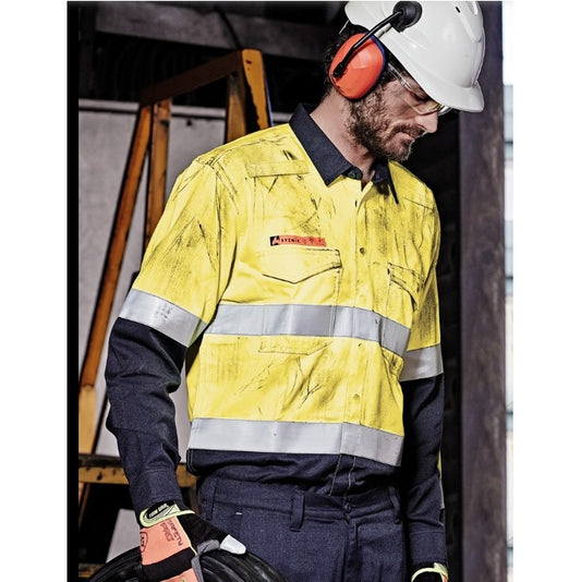 Syzmik ZW140 Mens Orange Flame HRC 2 Hoop Taped Open Front Spliced Shirt