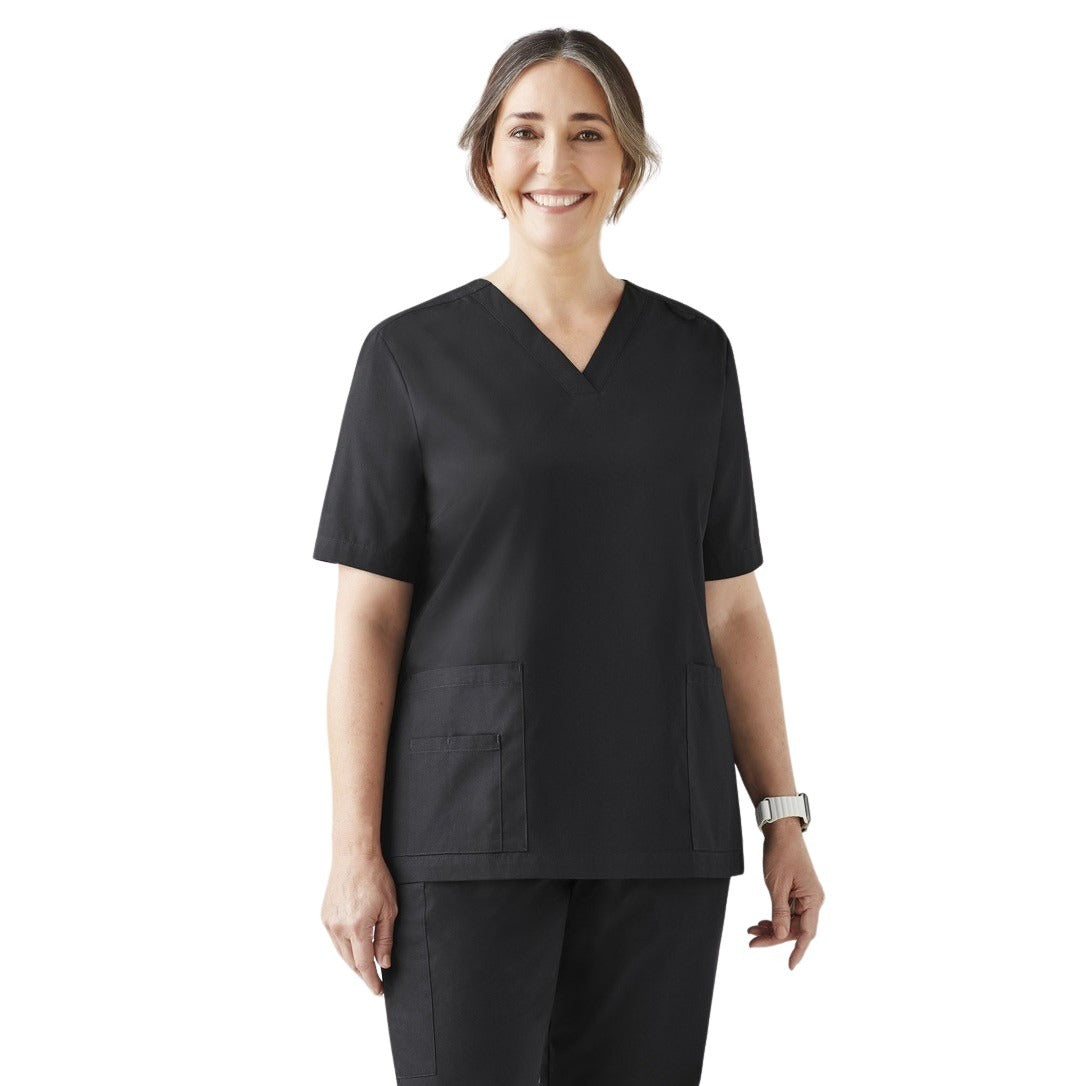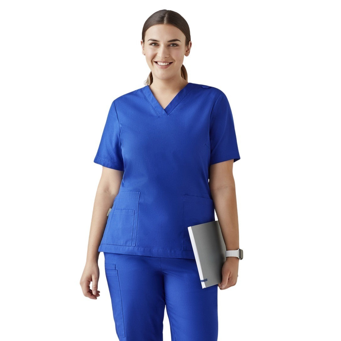 - Traditional V-neck scrub top style in a slightly tailored fit.