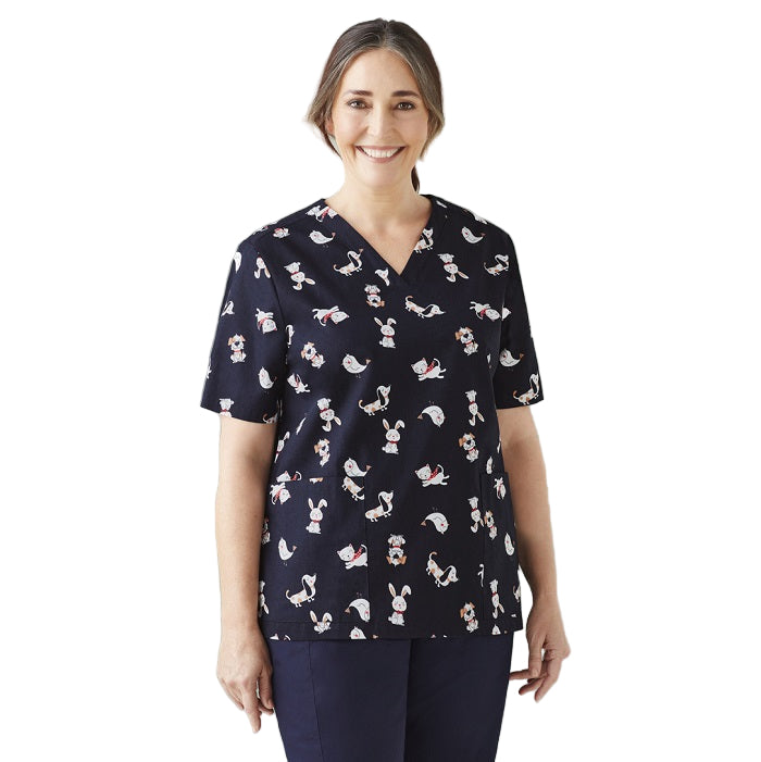 - A classic printed scrub top that can be paired back with any Biz Care lower