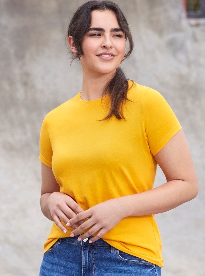 The Biz Collection T10022 Ladies Ice Tee offers a ribbed elastane neck that stretches comfortably and retains its form. It comes with a convenient tear-away label, making promotional rebranding effortless.