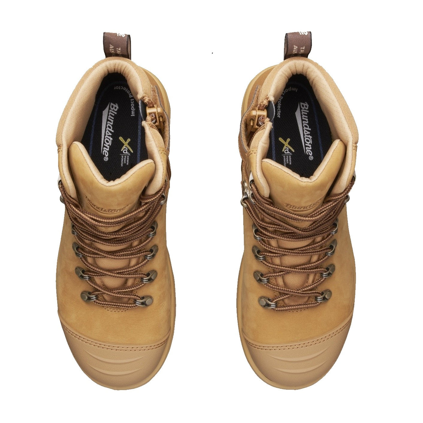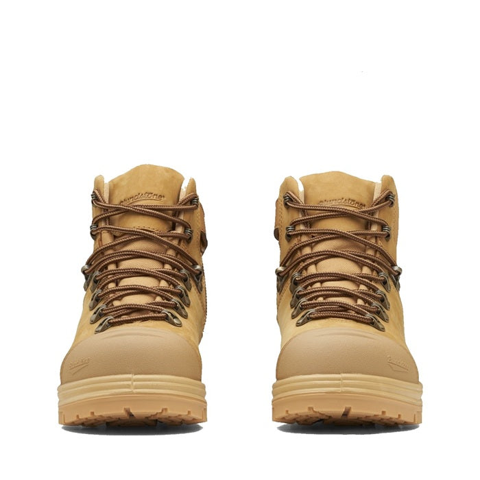 - Wheat nubuck water-resistant leather zip side ankle safety boot—135mm height