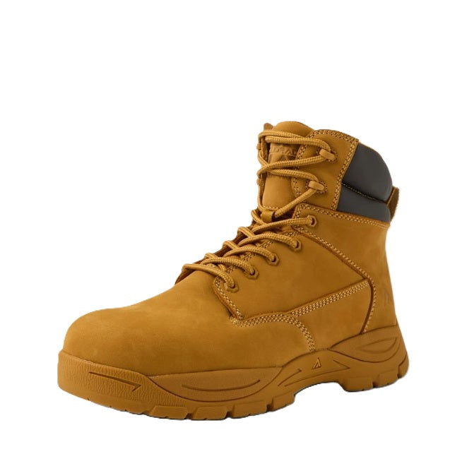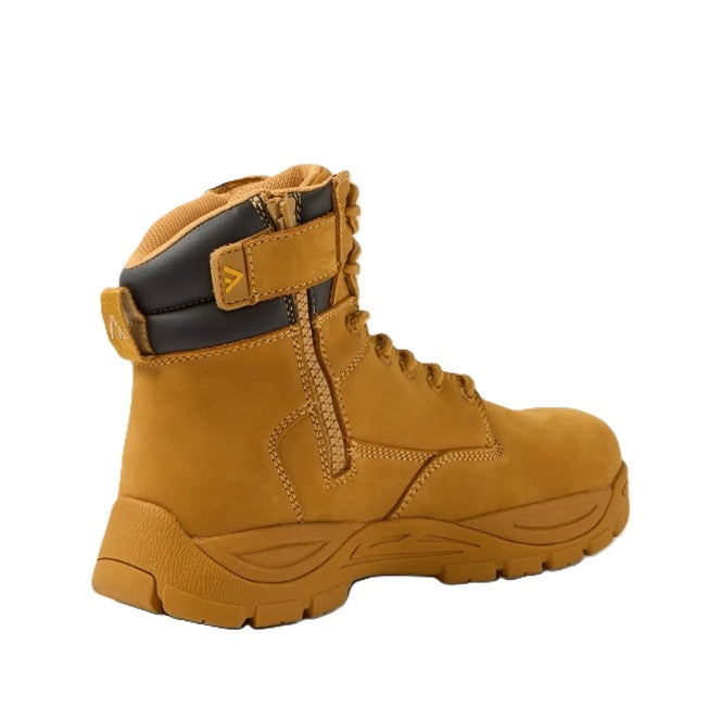 - 6inch high boot style zip & lace-up with padded collar and tongue. Nubuck leather offers soft & supple fit for all day comfort. Featuring a lined WATERPROOF BOOTEE ensuring your feet remain dry in all conditions. Lined with soft mesh tested to Australian standards, with an in-built ANTI-STATIC function.