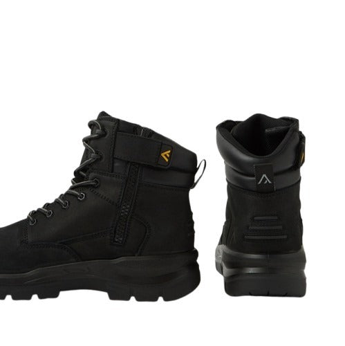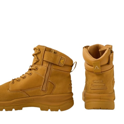 - 6inch derby style zip and lace-up ankle boot with padded collar and tongue plus scuff cap. Nubuck leather offers soft & supple fit for all day comfort. Featuring a lined WATERPROOF BOOTEE ensuring your feet remain dry in all conditions. Lined with soft mesh tested to Australian standards, with an in-built ANTI-STATIC function.