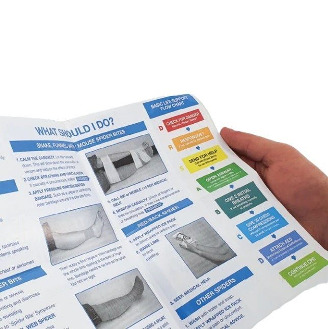 Quality hospital grade contents including heavy weight compression bandages, instant cold pack and more are TGA registered giving you peace of mind that FastAid only uses proven and effective contents. A full colour easy-to-follow Symptoms and Treatment Guide also provides you with critical information you need in the heat of the moment after a bite.