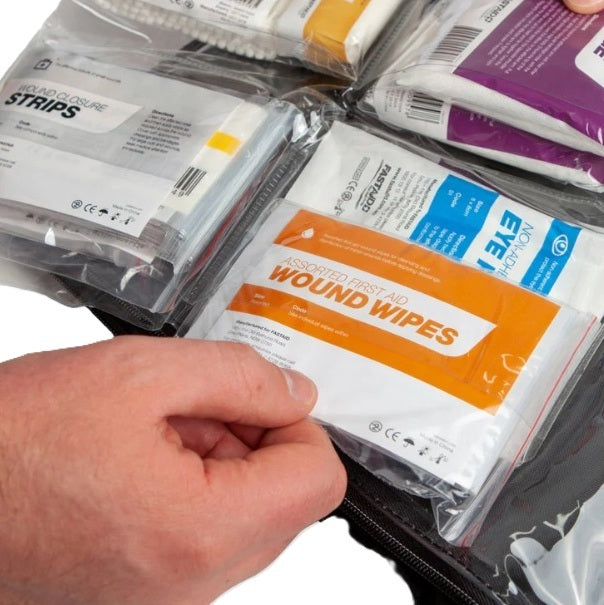 Highly portable and ultra-tough trauma style soft pack case includes internal fold out compartments to assist with kit organisation and includes a fully adjustable shoulder strap for grab and run situations. A reflective strip on the case exterior assists with locating your first aid kit in low light conditions. Also contains a bonus wall mount bracket for convenient wall hanging to keep your kit highly visible.