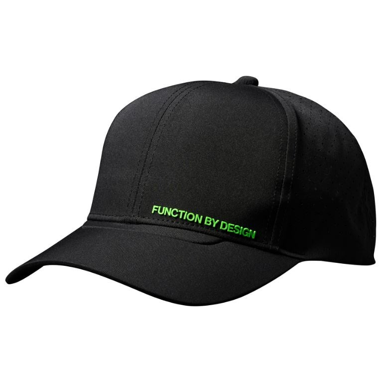 - Performance polyester with laser-cut breathable vents for airflow and breathability