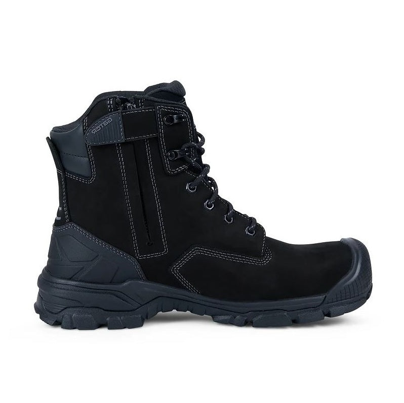 The NEW Gator AeroStep Black GA2058 is a zip sided boot with reflective elements. The upper is made of water repellent premium nubuck leather and has a drawn-up scuff cap in the toe area to reduce leather abrasion when working on knees.