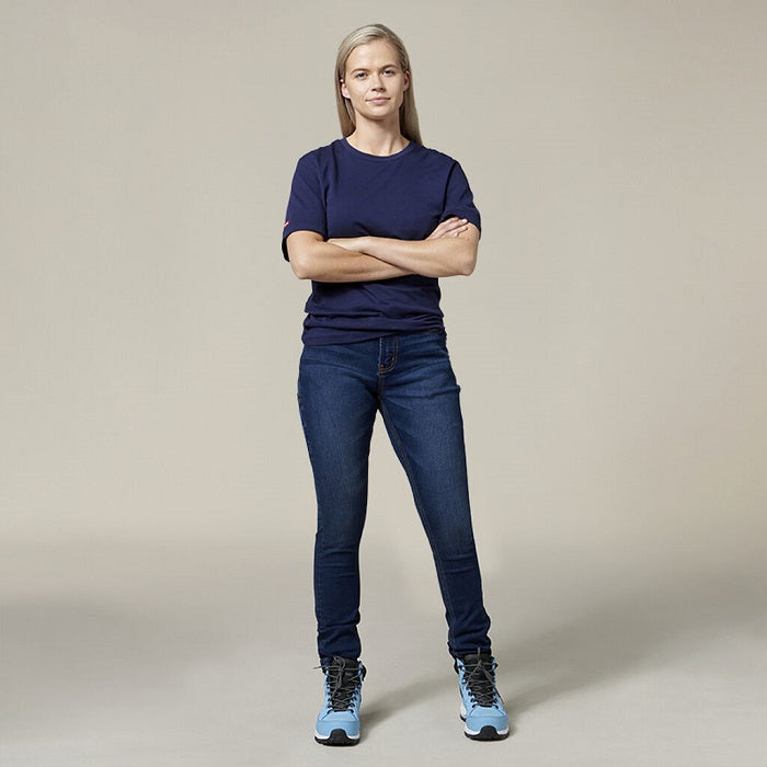 These on-trend women's work jeggings are both durable and incredibly comfortable to wear. They're specially engineered to flatter, with a higher waist line that gives you a slimmer fit. They're made with ultra lightweight power stretch denim either in black or a timeless shade of indigo, and their classic construction and subtle detailing means you'll look the part on or off the work site.