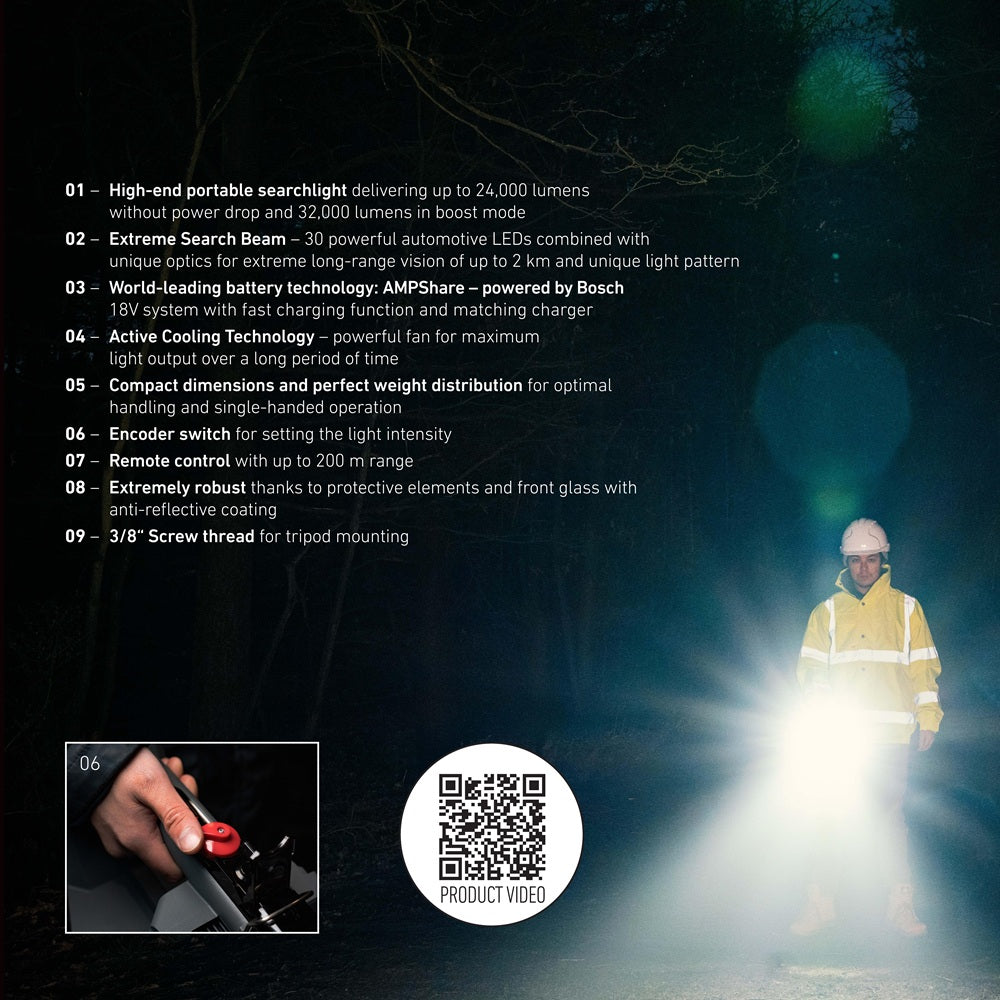 - High-end portable spotlight delivering up to 24,000 lumens and 32,000 lumens in boost mode