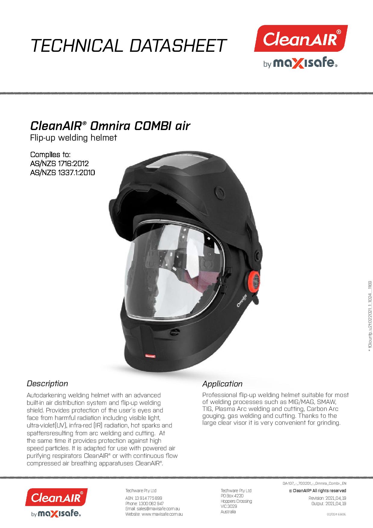 Maxisafe R303201 CleanAIR Omnira COMBI Welding Helmet & AerGO PAPR Kit