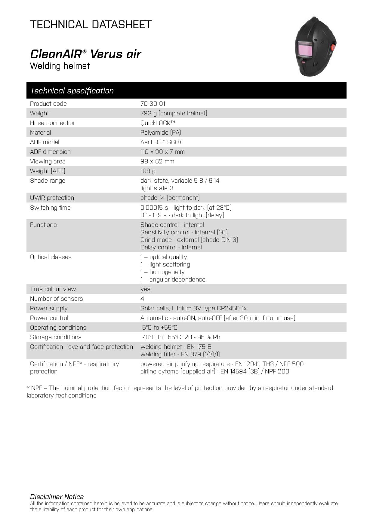 - Verus welding helmet (R813001)