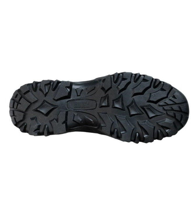 Kevlar® plate for protection from sharp things under your feet, outsole with slip resistant properties and heel energy absorption.