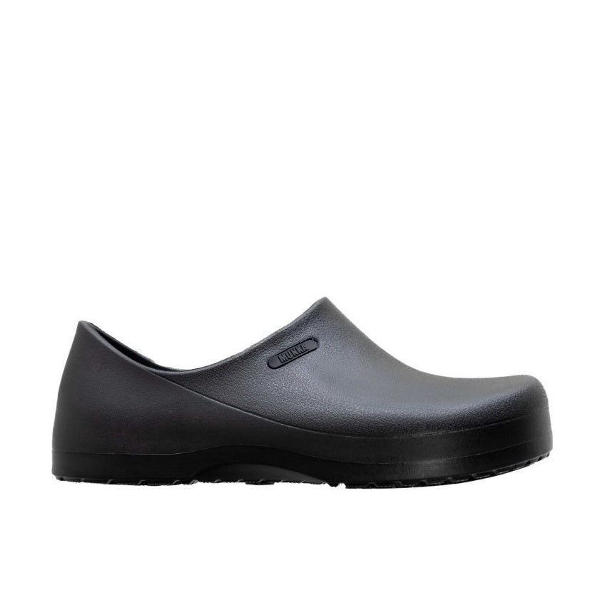 It features water resistant upper to prevent water penetration, premium PU insert footbed, and a slip and oil resistant outsole to prevent slips and trips on ceramic and steel surfaces.