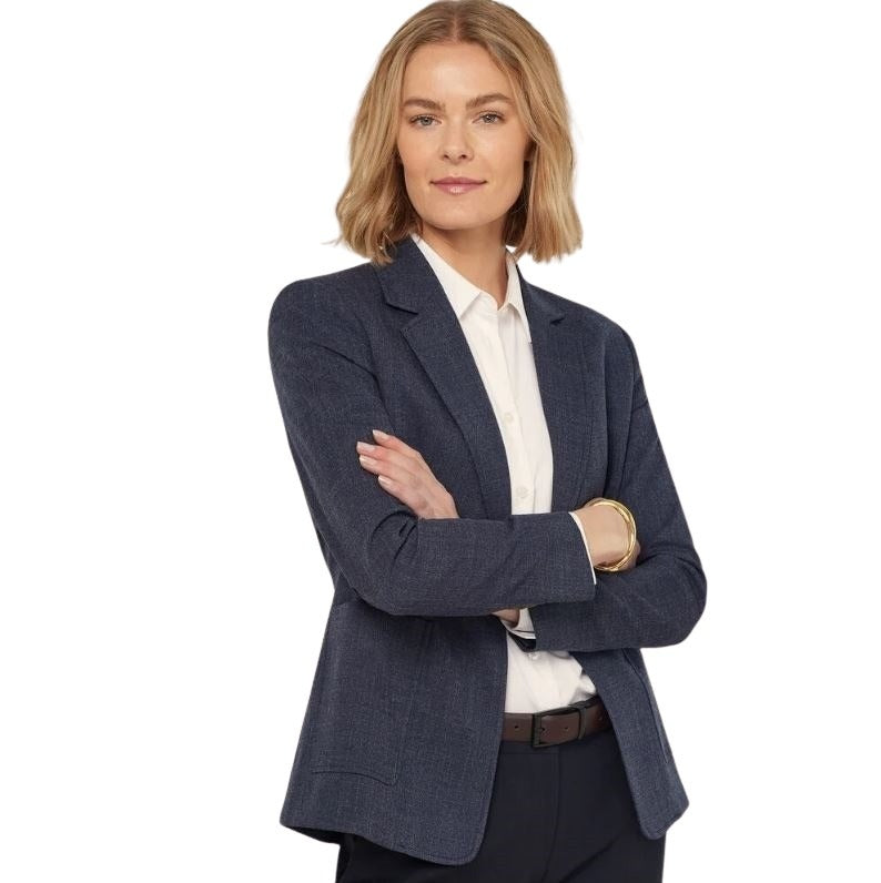 The new Textured Jacket is designed to instantly elevate any corporate look. The elegant linen-look fabric features a premium two-toned finish that delivers subtle texture, plus extra stretch for added comfort. A streamlined, single breasted silhouette pivots around a contrasting button fastening, while patch pockets bring balance. More relaxed than sharp tailoring but just as polished, the design’s smart indigo colourway is both flattering and fashionable and ideal for the warmer months.