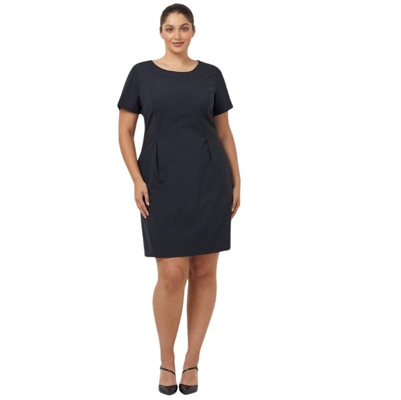 With a nipped-in waist and knee skimming hemline, the Short Sleeve Dress is an elegant option to wear to work. The flattering cut features two inverted pleats at the front to accentuate shape and add interest to an otherwise simple silhouette. We like the softly rounded neckline and cropped sleeves, which accentuate the streamlined style. Rendered in inky navy blue or classic charcoal, the result is timeless and smart. Just add high heeled pumps for office dressing made easy.