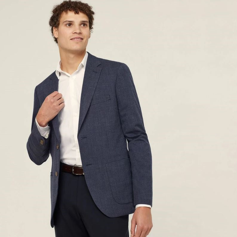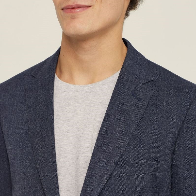Love the look of linen but not the upkeep? Our Textured Jacket is a game changer for the warmer weather. The clever two-toned fabric features a premium linen-look finish and offers extra stretch for more room to move. More relaxed than strict suiting but just as polished, the elevated indigo colourway is enhanced with smart contrasting buttons that deliver extra attention to detail.