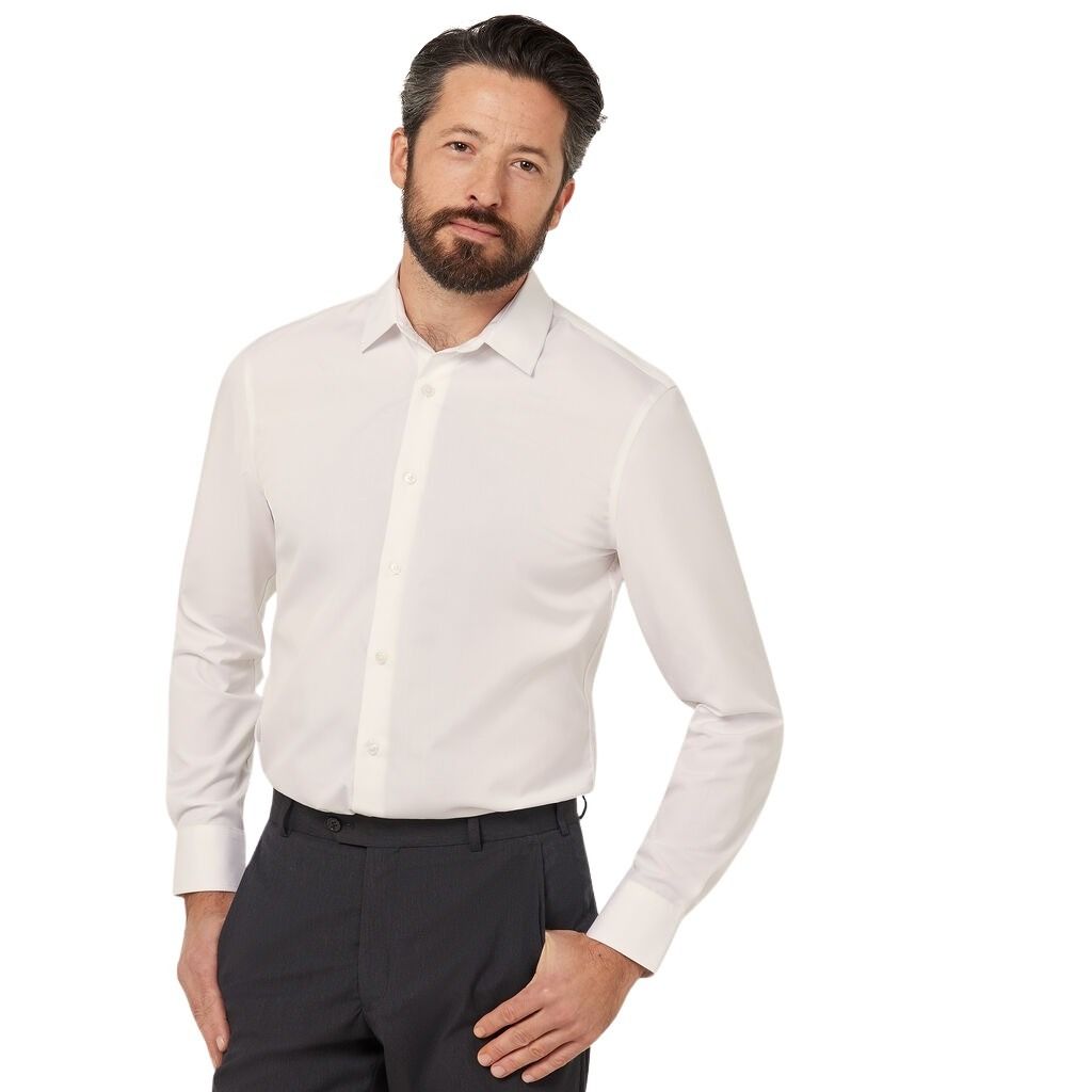 The perfect white shirt does exist. Meet our new Long Sleeve Cotton Shirt, set to become a workday favourite. It's cut from 100% cotton that's naturally breathable and so comfortable to wear. This premium design features inbuilt collar stays and an adjustable combination cuff which can be worn with cufflinks when desired. Pleats at the back yoke allow extra room to move, as does the shirt-tail hemline. The slim fit silhouette looks sharp when tucked into tailored trousers, offering a contemporary finish with a high-quality feel.