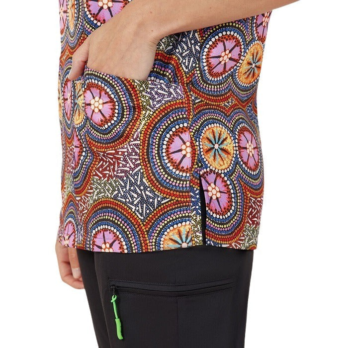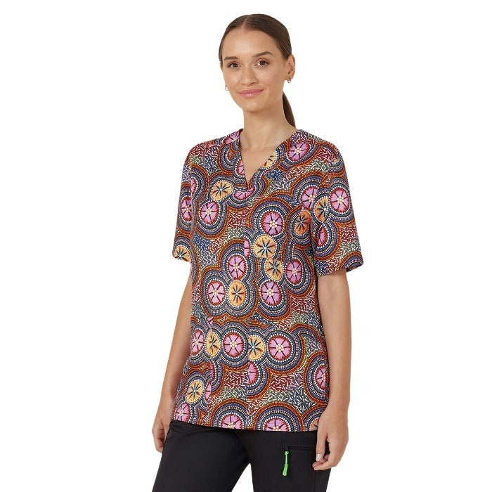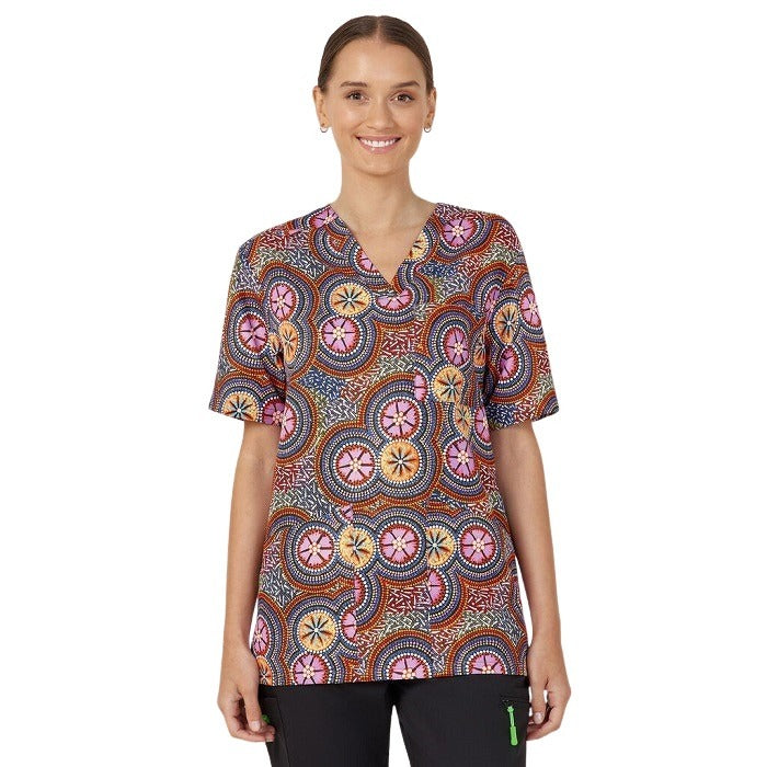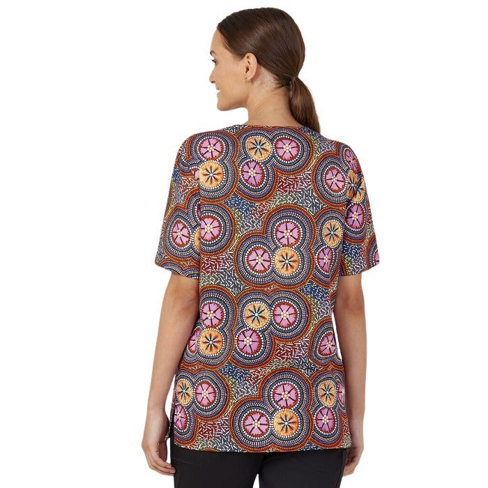 Our bestselling unisex scrub top is enlivened with a standout artwork by Indigenous artist Glenda Nangala Briscoe.