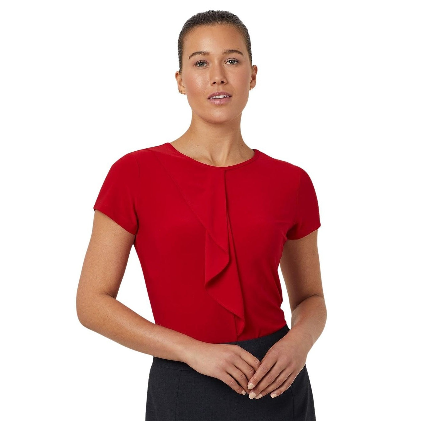 Our Short Sleeve Round Neck T-Top is a clever blend of form and function. The jersey knit fabric is super soft and comfortable and offers inbuilt stretch for added movement. The smart crew neckline is neatly bound for a refined finish, while the cascading asymmetrical drape detail adds interest to the otherwise simple styling. Tuck it into a streamlined skirt for a polished look or wear it loose with relaxed pants for a more laidback approach to work wear.