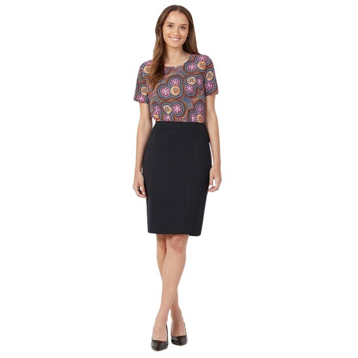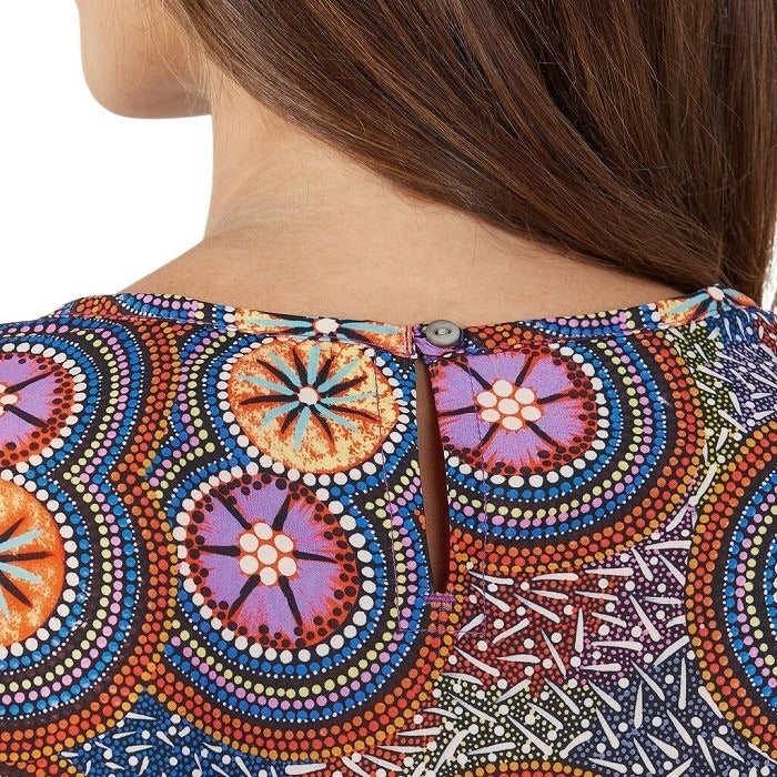 Let the beautiful Bush Tucker Blouse bring new life to your workwear look. With its effortless classic fit, round neckline and smart, short-sleeve styling, the piece is ideal for any corporate environment. Its simple silhouette takes on fresh appeal when stamped with a vivid limited-edition digital print, derived from a work by Indigenous artist Glenda Nangala Briscoe. The intricate pattern and vivid palette of her Bush Tucker artwork reflects Glenda's signature style – a creative combination of colour and pattern to represent her mother and her grandmothers country, while incorporating her own ideas of modern design.