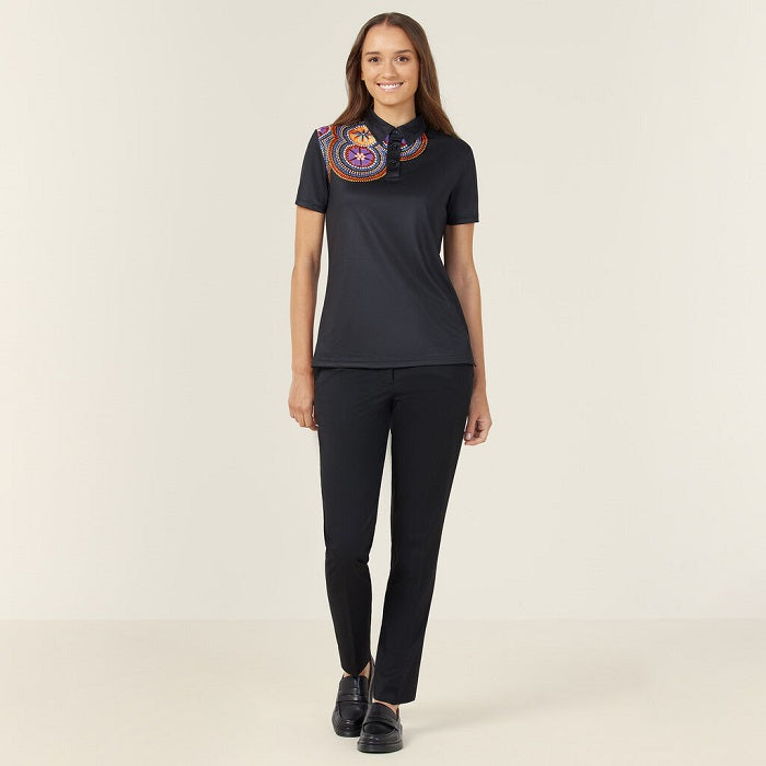 The classic NNT polo gets a striking update stamped with a limited-edition print designed by Indigenous artist Glenda Nangala Briscoe. Her intricate design, entitled Bush Tucker, is reflective of the artist's signature style. Glenda employs a creative combination of colour and pattern to represent her mother and her grandmother’s country while incorporating her own ideas of modern design.