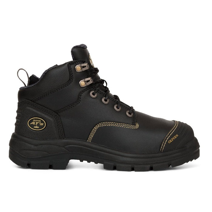 Features include - Water resistant leather Oliver COOLstep® lining to absorb moisture and odour for optimum freshness and hygiene Lace locking fixture Kevlar® thread on critical wear seams for maximum abrasion and chemical resistance COMFORTcushion® Impact Absorption System uses a combination of cellular urethane and PORON® Oliver SOFTstride® open cell low density urethane foam for comfort and contour Shock absorbing Polyurethane midsole support NATUREform® Type 1 Toe Cap. Wider profile for greater comfort Latex toe cap liner for added comfort TECtuff® toe guard Long wearing All Terrain rubber outsole designed for superior grip and durability. Anti-Static Deep tread profile with self-cleaning design.