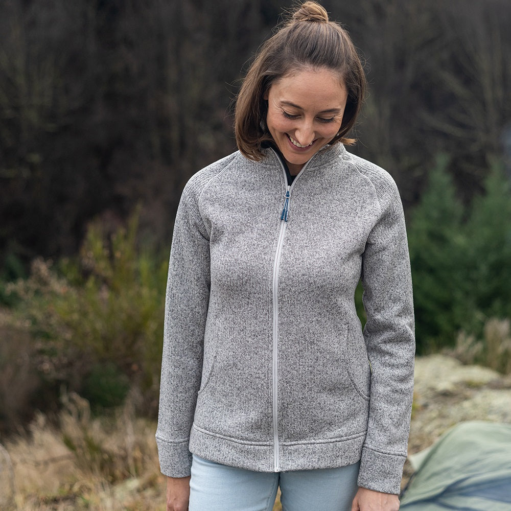 For soft, feel good warmth look no further than our Imai Recycled Knit Womens Jacket. Lightweight and cosy this relaxed layer is perfect for your hiking, travelling and casual wear needs. Cleverly crafted from recycled fabrics, the Imai is kind on the environment and thoughtful features such as hand warmer pockets and a feminine fit will have you never wanting to take it off!
