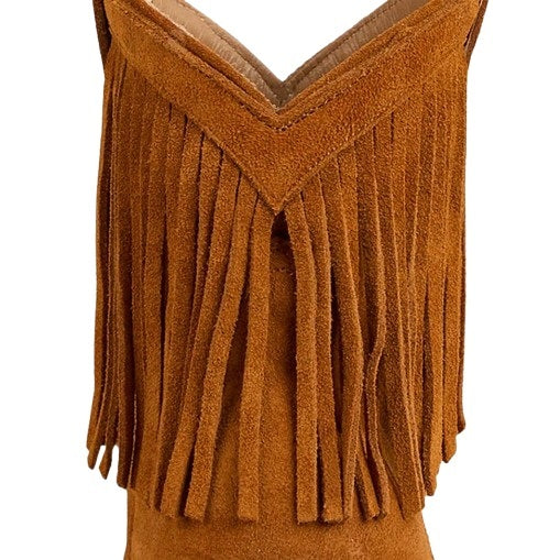The Brittany Womens boots are a round toe style, meticulously hand crafted in Mexico from premium Cowhide Suede leather. The Brittany boots feature a high 9cm stacked heel as well as eye catching, western fringe – these boots are destined to dance the night away!