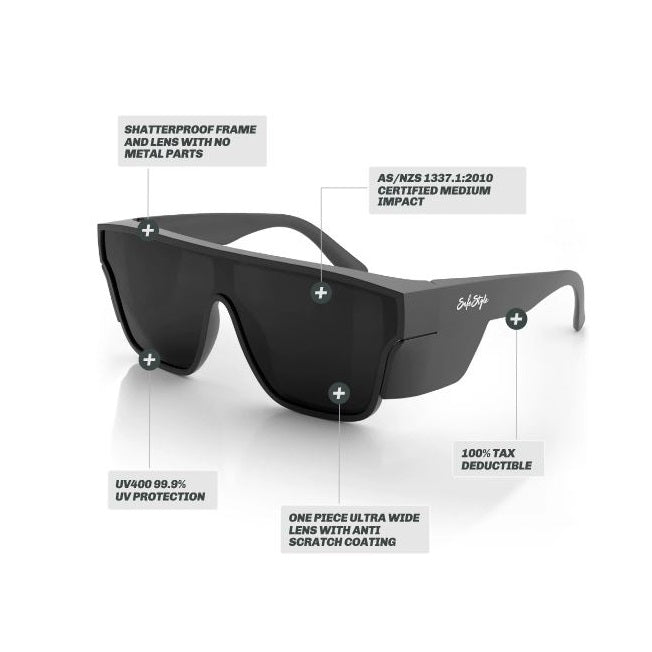 Featuring everything you know & love about SafeStyle’s range, but trust us when we say, this pair is as tough as it gets! Shatterproof polycarbonate frames/lenses matched with the biggest side shields in the game means you are fully equipped with the ultimate protective eyewear.