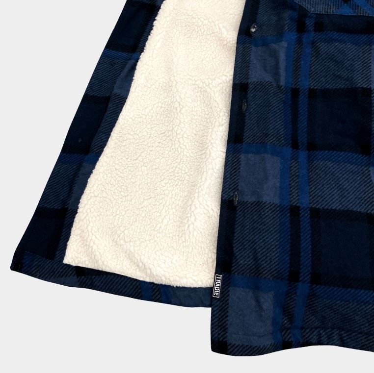 Get rugged comfort with the Terrain Sherpa Jacket, Aussie style at its finest. Washed printed check design with sherpa lining for warmth, chest pockets with button closures, embroidered back logo, Tradie arm badge, and branded buttons. Perfect for durable Aussie outdoor wear.