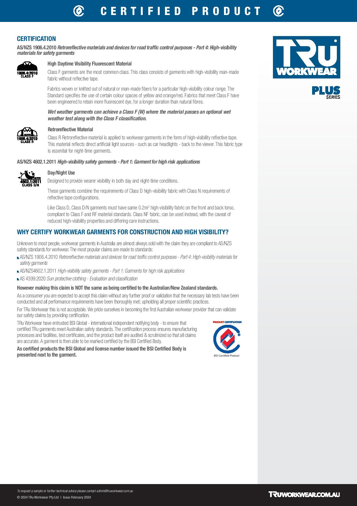 - Reflective Tape: Tested to Standard AS/NZS 1906.4:2010.