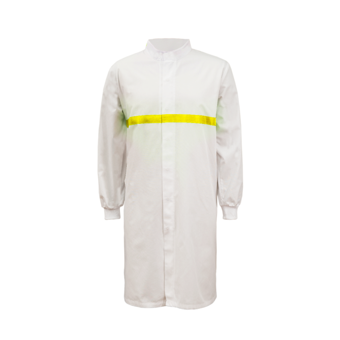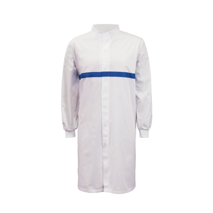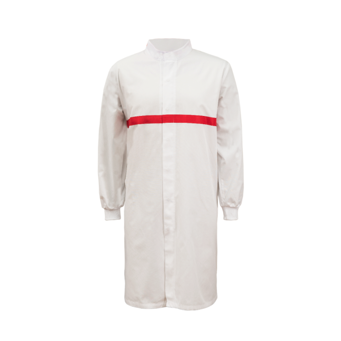 Workcraft WJ3198 Food Industry Long Length Dustcoat with Mandarin Collar, Contrast Trims on Chest- Long Sleeve