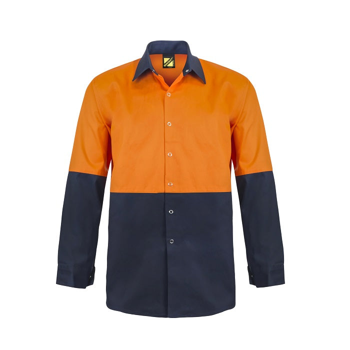 Workcraft WS3035 Hi Vis Two Tone Long Sleeve Ctton Drill Food Industry Shirt with Press Studs and No Pockets