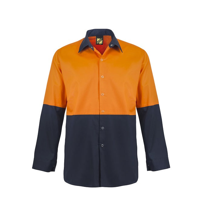 Workcraft WS3045 Lightweight Hi Vis Two Tone Long Sleeve Vented Cotton Drill Food Industry Shirt with Press Studs and No Pockets